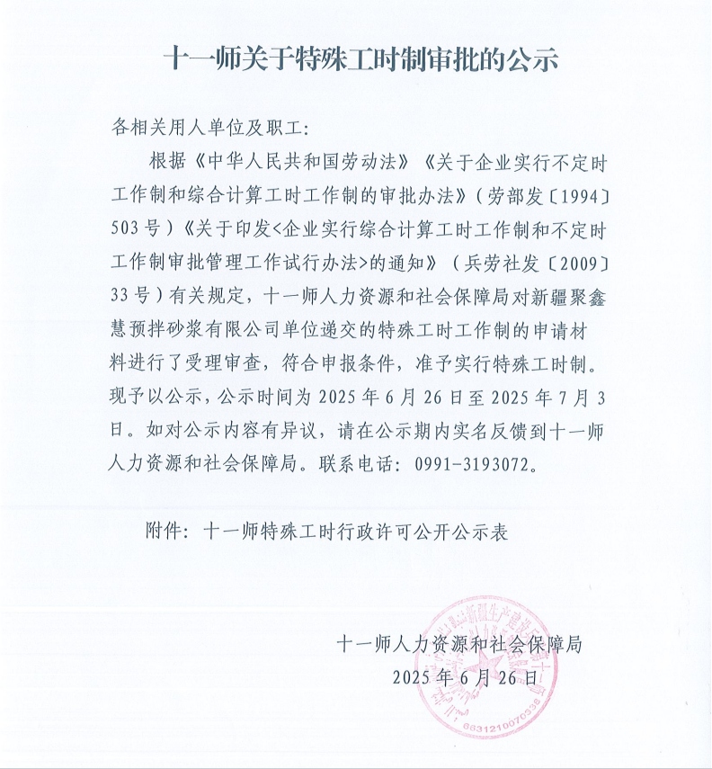 十一师关于特殊工时制审批的公示