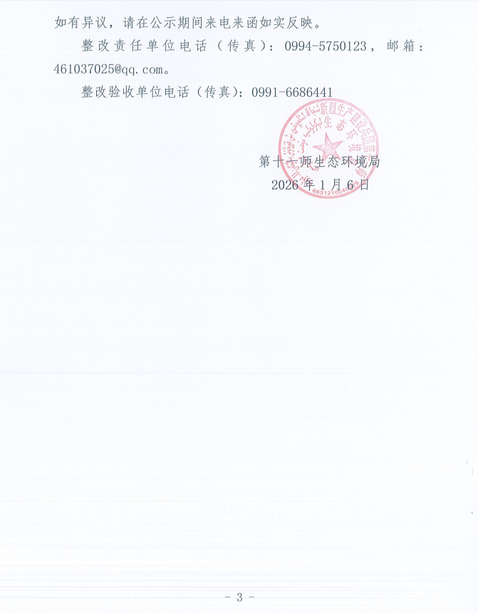 关于第十一师第一轮兵团生态环境保护督察反馈意见(序号30)整改完成情况的公示-尊龙凯时